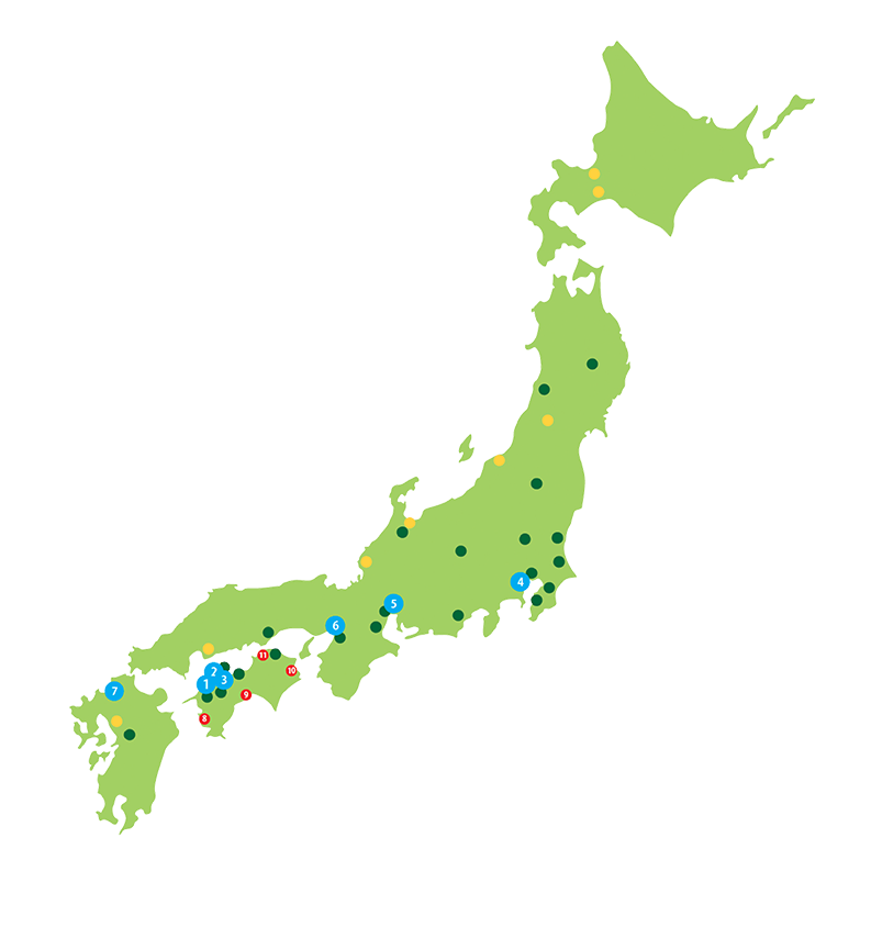 愛媛エリアを中心に、九州から北海道エリアまで全国ネットワークを構築しています。