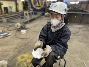 汗だくになりながら、溶接を続け研磨した後、焼き入れ作業をして