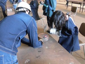 鍛冶屋体験では小刀を、溶接体験ではネームプレートを製作し、工場を見学いたしました。