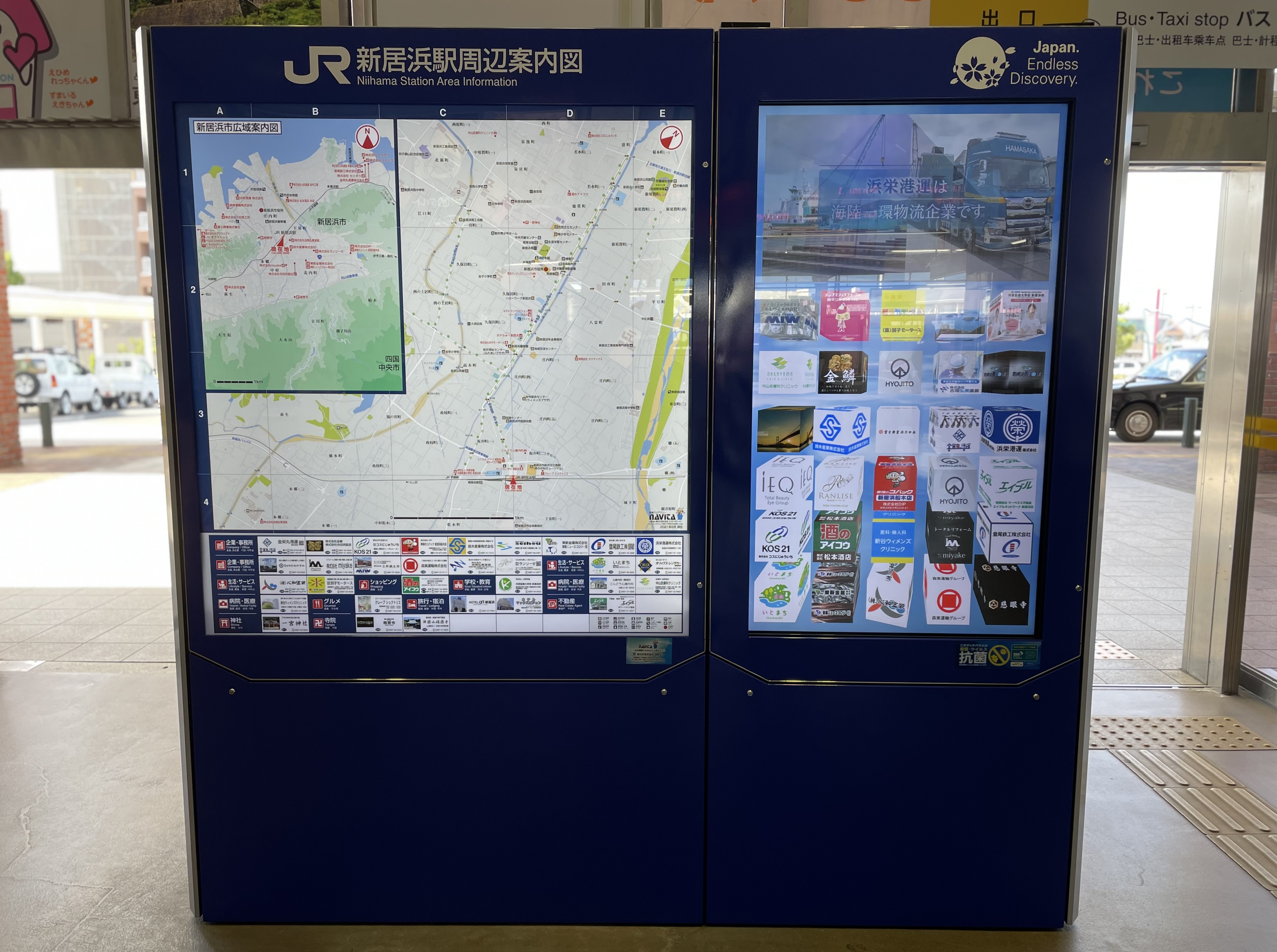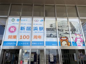 新居浜駅が開業して100周年を迎え、駅出入口に新たにデジタルサイネージが設置されました。