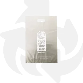 米、米ぬか、デンプンといったバイオマスを20%配合したポリ袋