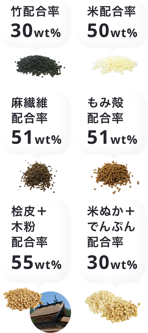 種類豊富なバイオマス素材と