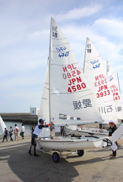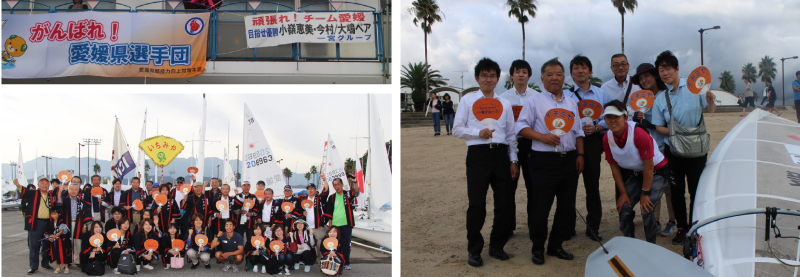 一宮グループ国体報告 セーリング競技応援 日程:2017年10月1日(日)10月3日(水) 場所:新居浜マリーナ(マリンパーク新居浜) 試合結果:ウィンドサーフィン級 小嶺恵美 1位(優勝) 今村・大嶋ペア 470級 5位 出艇前 今村・大嶋選手 出艇前 小嶺選手 一宮運輸応援団