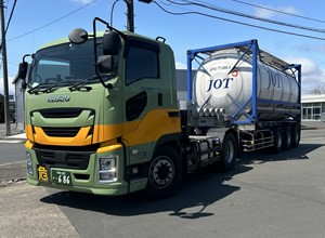 ISOタンクで電子工業用高純度溶剤(危険物)を輸送しています。 |