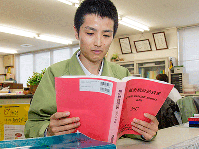 私は輸出入商品の通関業務および国内輸送手配に従事しています。「通関業務」は聞きなれない言葉かもしれませんが、お客様から依頼を受け、海外から日本に到着する貨物あるいは日本から海外に送り出す貨物について、書類の記載事項を精査し税関に申告する業務です。私は日々通関業務に携わりながら、検査のために港でコンテナの荷物検査の立会いをしたり、お客様と配送日を煮詰め、指示を出したりしています。もちろんそれだけではなく、請求書等の作成や書類整理などの事務作業も大事な仕事です。