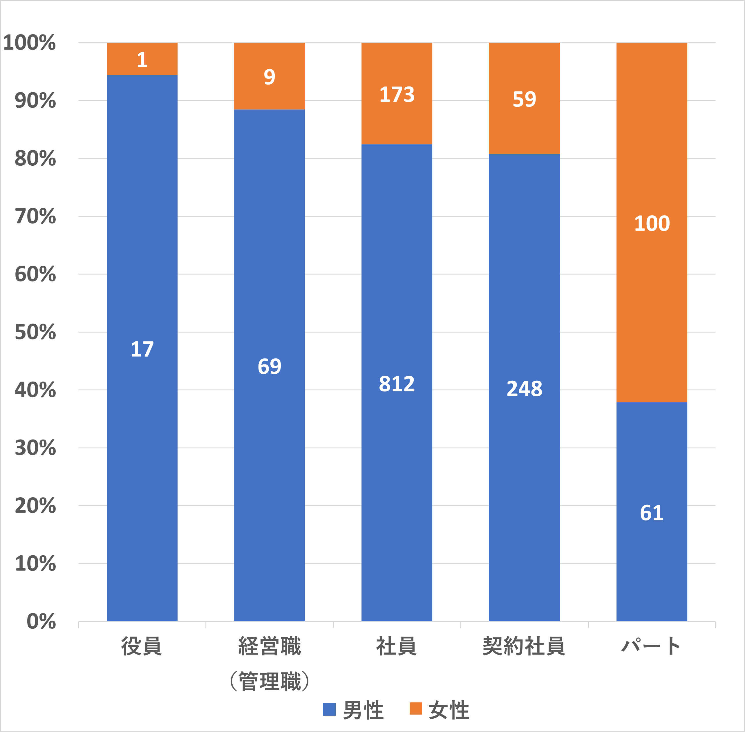 当社は、多様な業態を有する総合物流企業であり、様々な職種がございます。それぞれの職種において、プロフェッショナルを目指して頂く。その中で、役職登用についても計画的に行い、女性の強みを活かした経営参画を一層促し、企業経営に取り組んでゆきたいと考えております。実現する為に必要な環境整備(設備、制度等)は柔軟に対応し、能力を発揮しやすい企業づくりに努めてまいります。